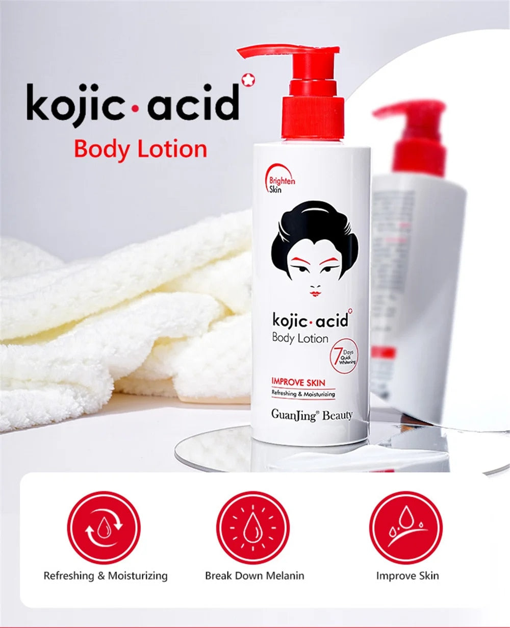 Key Ingredients (assumed from name and category): Kojic Acid, possible plant extracts and moisturizing agents (not listed on the visible packaging)